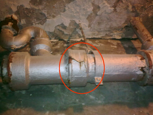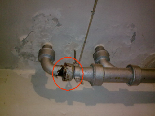 3、先把鑄鐵管拿鑄鐵焊條改成立式朝向下水,接著在后接管件頂端預(yù)置一個(gè)接頭,再把自家下水的PVC管接到接頭里面,把此接頭朝著自家下水的窟窿,之后在鑄鐵接頭內(nèi),PVC管周遭打上防水膩?zhàn)樱詈竽ㄉ戏浪z即可。
